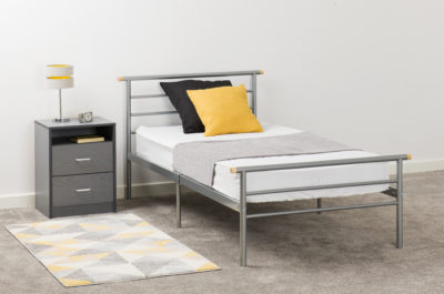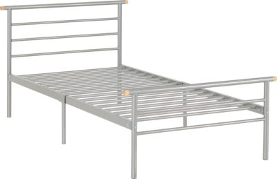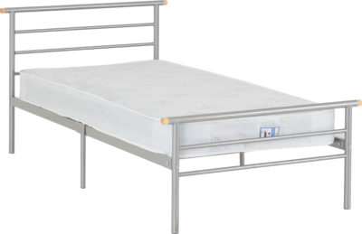 Orion 3ft metal bedframe finished in silver, self assembly. Mattress extra.1055 x 1975 x 840