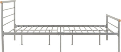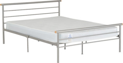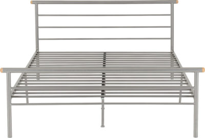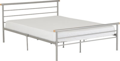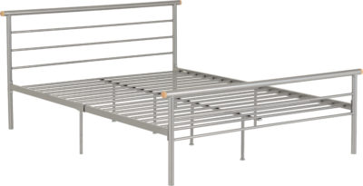 Orion 4ft metal bedframe finished in silver, self assembly. Mattress extra.