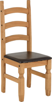 Pair of corona dining chairs with upholstered brown pu seat, self assembly