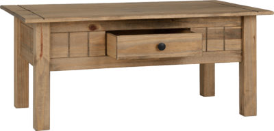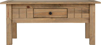 Panama 1 drawer coffee table finished in natural wax, self assembly, 1000 x 600 x 440