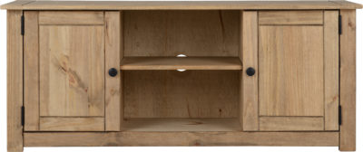 Panama 2 door 1 shelf flat screen TV unit finished in natural wax, self assembly.