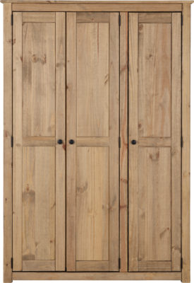 Panama 3 door wardrobe finished in natural wax , self assembly. 1180 x 500 x 1750