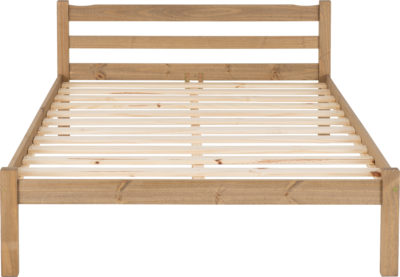 Panama 4.6 bedframe finished in natural wax pine finish, wooden slats, self assembly. Mattress extra.1430 x 1980 x 770