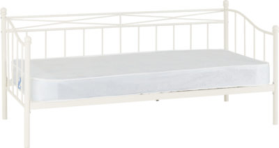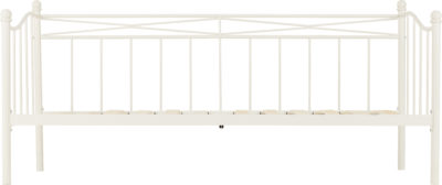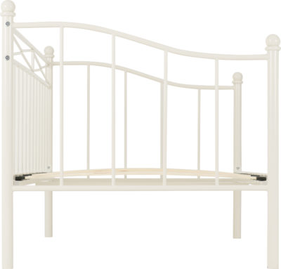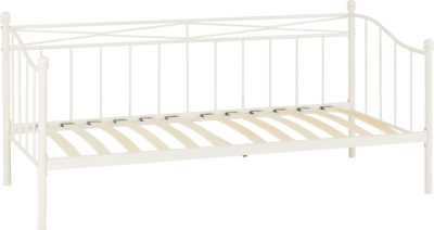 Pandora day bedframe finished in white with wooden sprung slats, self assembly. mattress extra.2010 x 960 x 920
