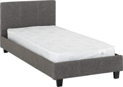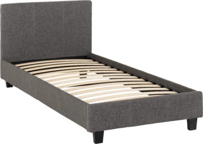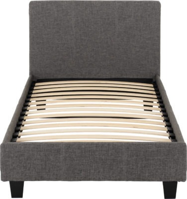 Prado 3ft Bedframe in grey fabric with sprung wooden slats, self assembly, mattress extra.