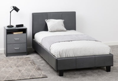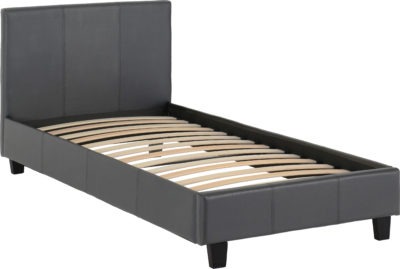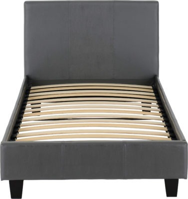 Prado 3ft Bedframe in grey faux leather with sprung wooden slats, self assembly, mattress extra.