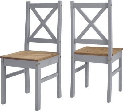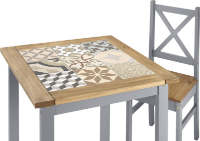 Salvador table with 2 dining chairs finished in slate grey with distressed waxed pine and a tile table top, self assembly.