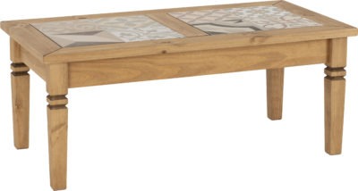 Salvador tile top coffee table finished in distressed waxed pine, self assembly. 1050 x 560 x 440