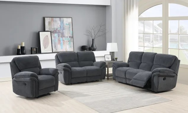 Sasha recliner 3str and 2 recliner armchairs in dark grey fabric
