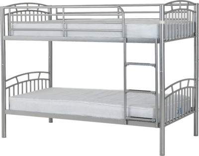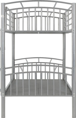Ventura 3ft bunk bedframe in metal finished in silver with metal tubing slats , self assembly. mattress’s extra. 2010 x 1010 x 1540