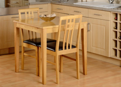 Vienna dining set with chairs finished in medium oak with brown upholstered seats, self assembly.750 x 750 x 760