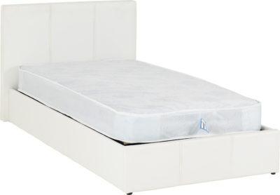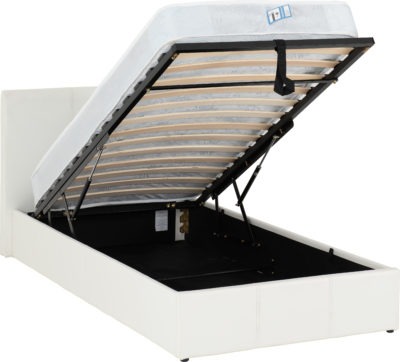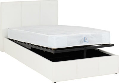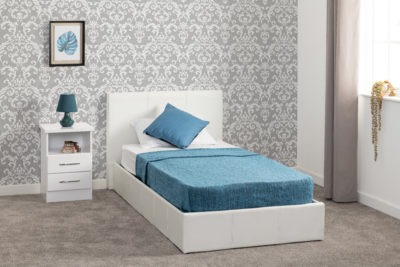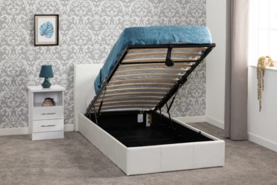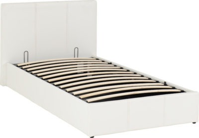 Waverley 3ft storage bedframe finished in white faux leather with sprung slats and fabric base, self assembly, mattress extra,980 x 2010 x 870