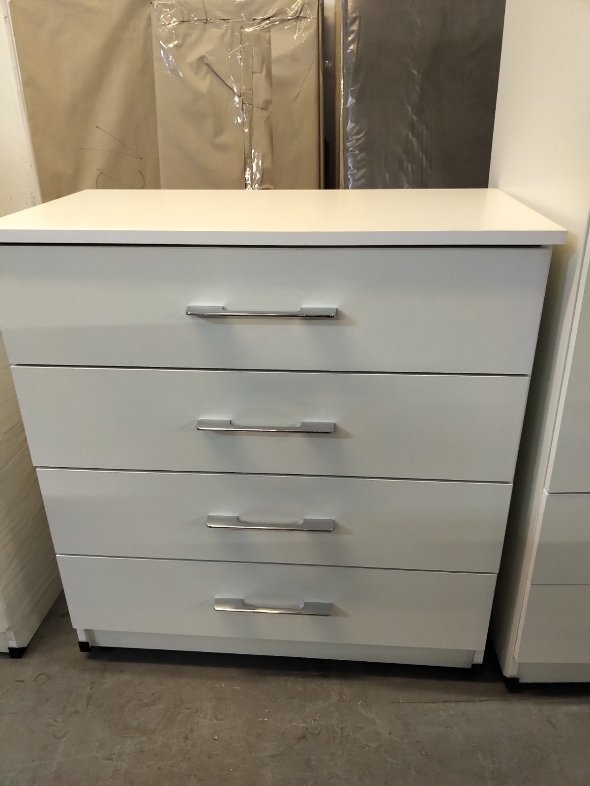 white 4 drawer chest fully factory assembled available in 5 colours .